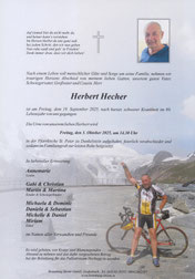 Mit tiefer Bestürzung müssen wir das Ableben unseres langjährigen Vereinsmitglied und Freund Herbert Hecher bekanntgeben.